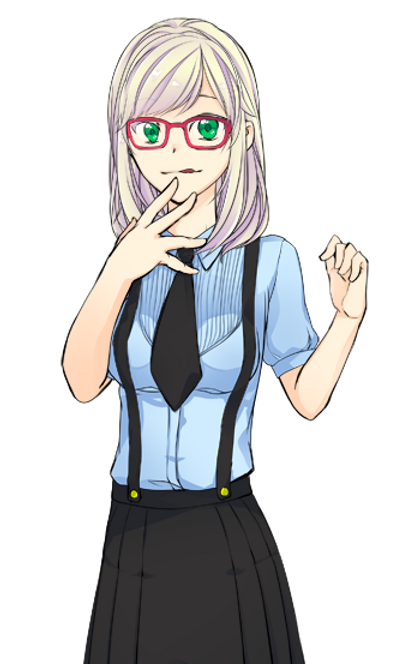 그녀를 처음 만나자 마자 눈에 들어오는것은 어깨위를 맴도는 허니블론드의 머리카락이였다. 부드럽게 흩어지는 옅은 백금발의 머리카락은 한번 만져보고 싶을 정도로 부드러워 보였다. 그리고 이어 들어오는것은 눈에 확 띄는 핫핑크의 뿔데안경. 안경너머로 보이는 눈동자는 에메랄드를 닮아 반짝거리며 빛나고 있었다. 얼굴에는 언제나 장난스러운 미소가 걸려있었다.